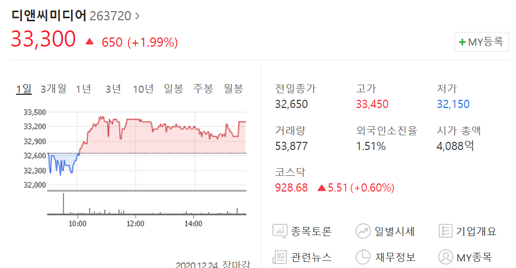 디앤씨미디어는 웹툰이나 웹소설을 공급하는 기업입니다. 카카오페이지 관련주로도 알려져 있어요.
